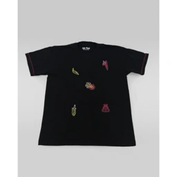 - A stylish oversized tee featuring intricate embroidery at the front.